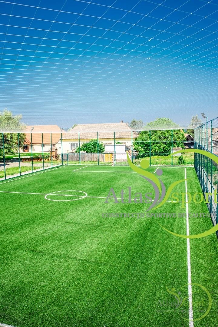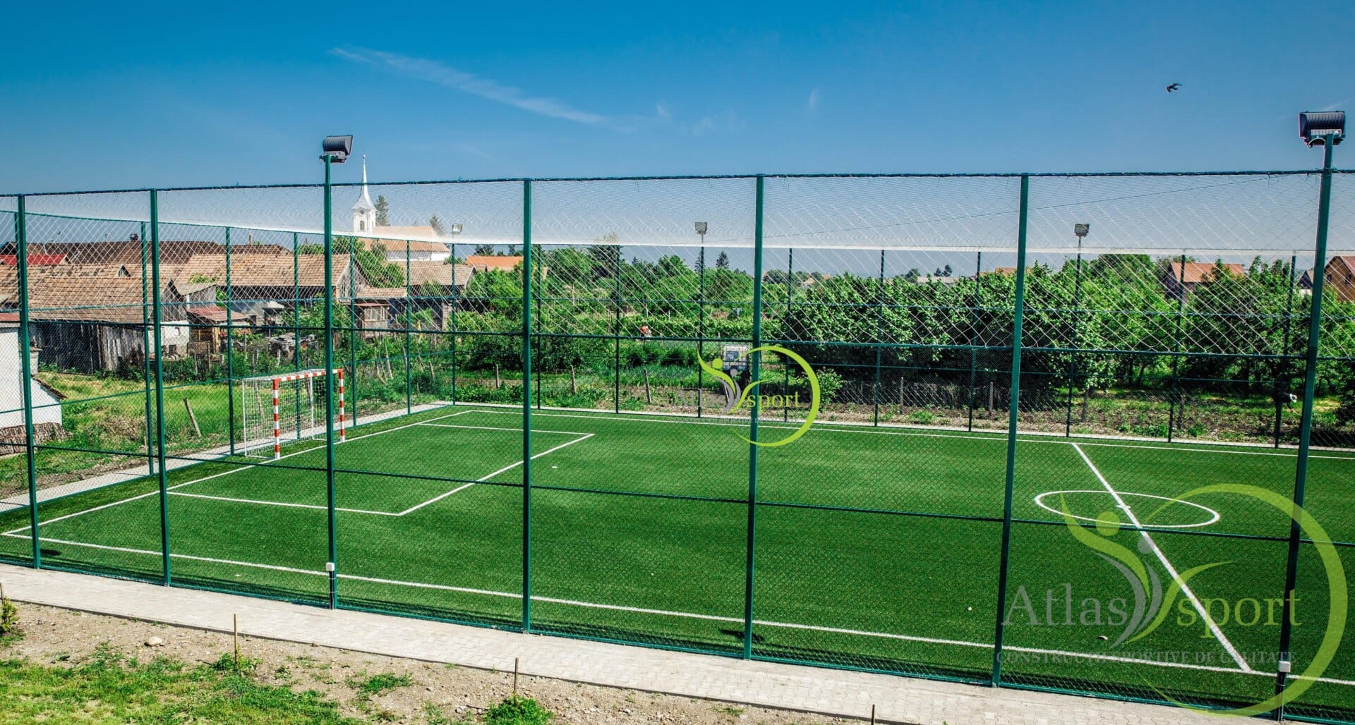 Suprafața de joc este realizată cu gazon sintetic de 4 cm grosime.