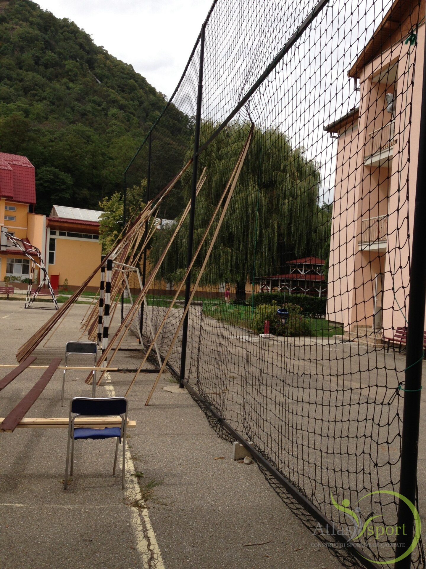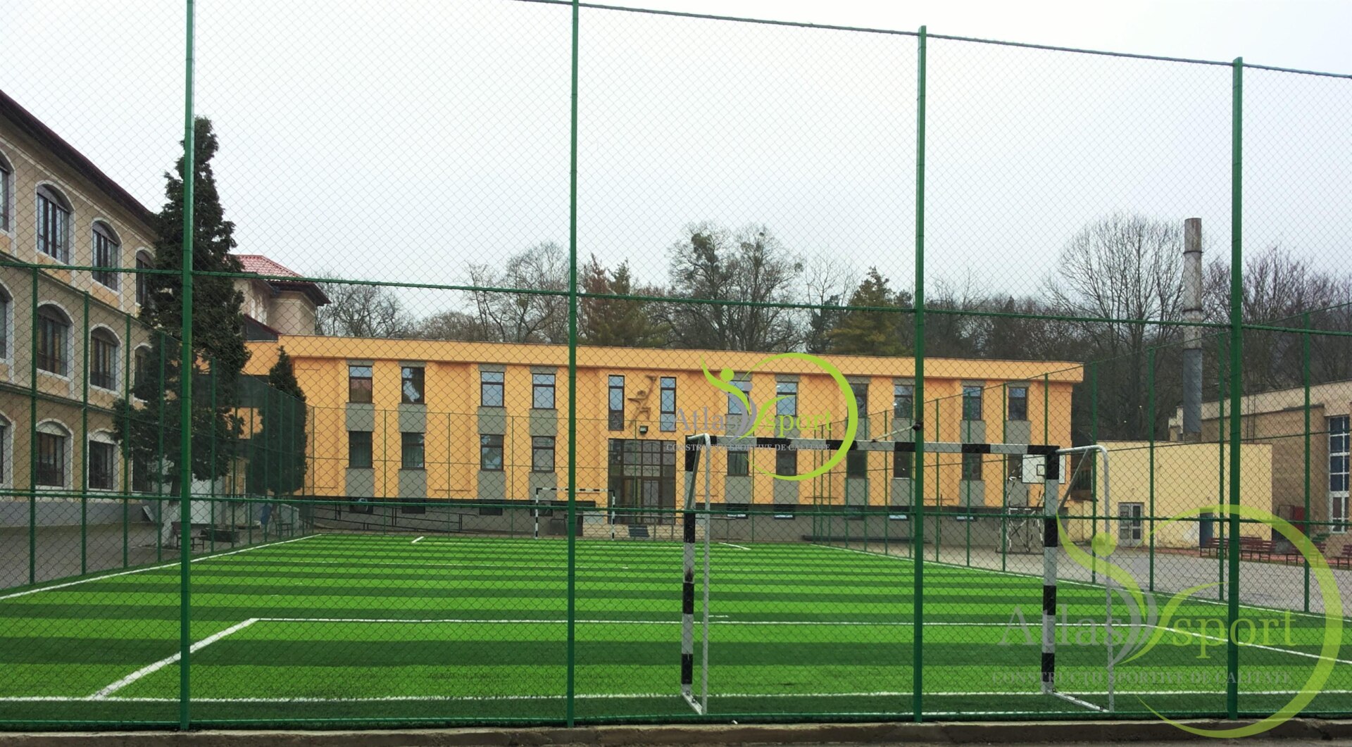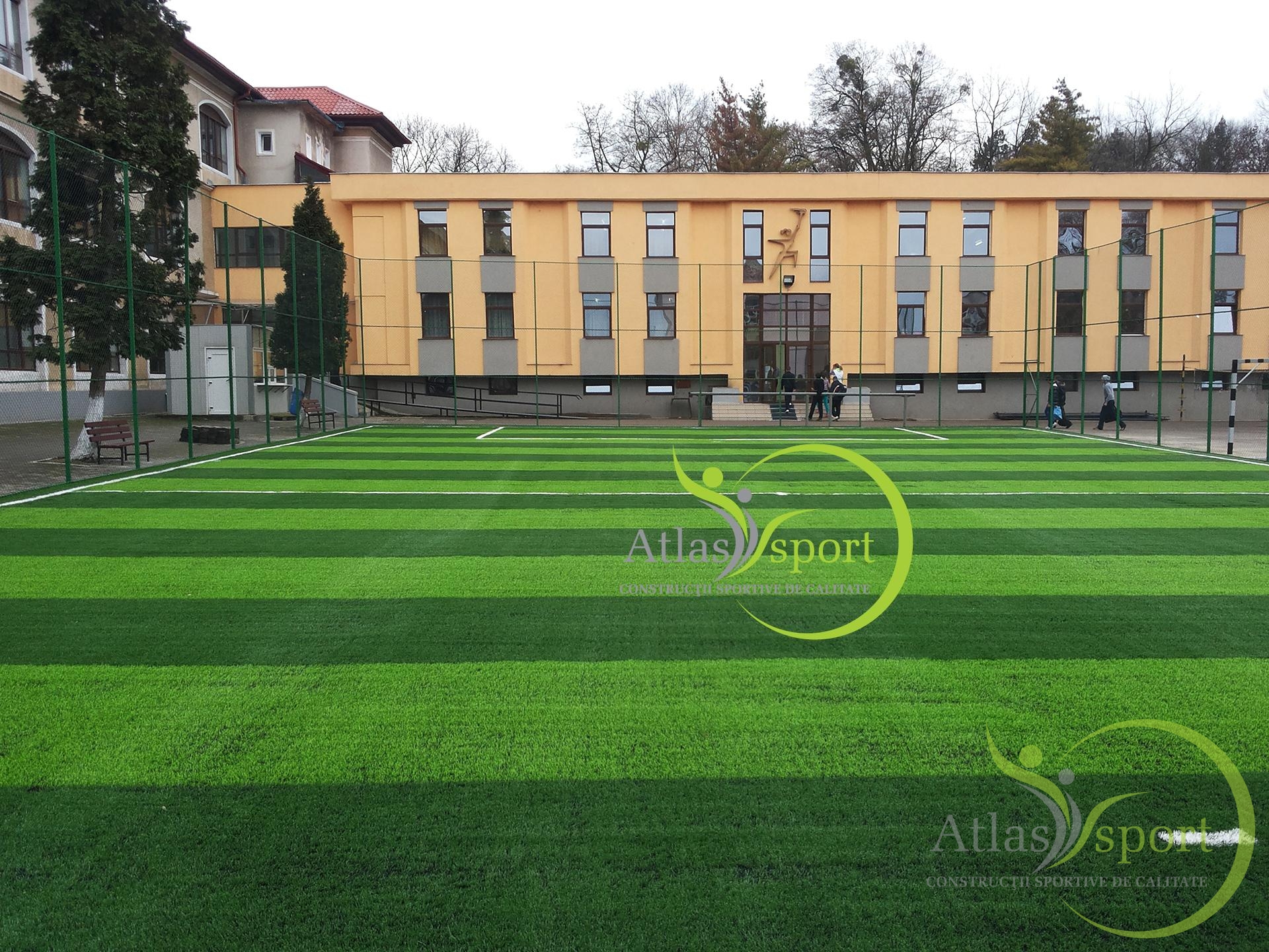 Contractul încheiat între SC. Atlas Sport SRL şi Colegiul Naţional Sportiv Cetate, Deva, a presupus realizarea unui teren de minifotbal cu dimensiunile de joc de 38,5 x 19,00m, la care s-a prevăzut spaţiul de siguranţă de 2,00 m în spatele porţilor şi 0,75 m pe laturile lungi.