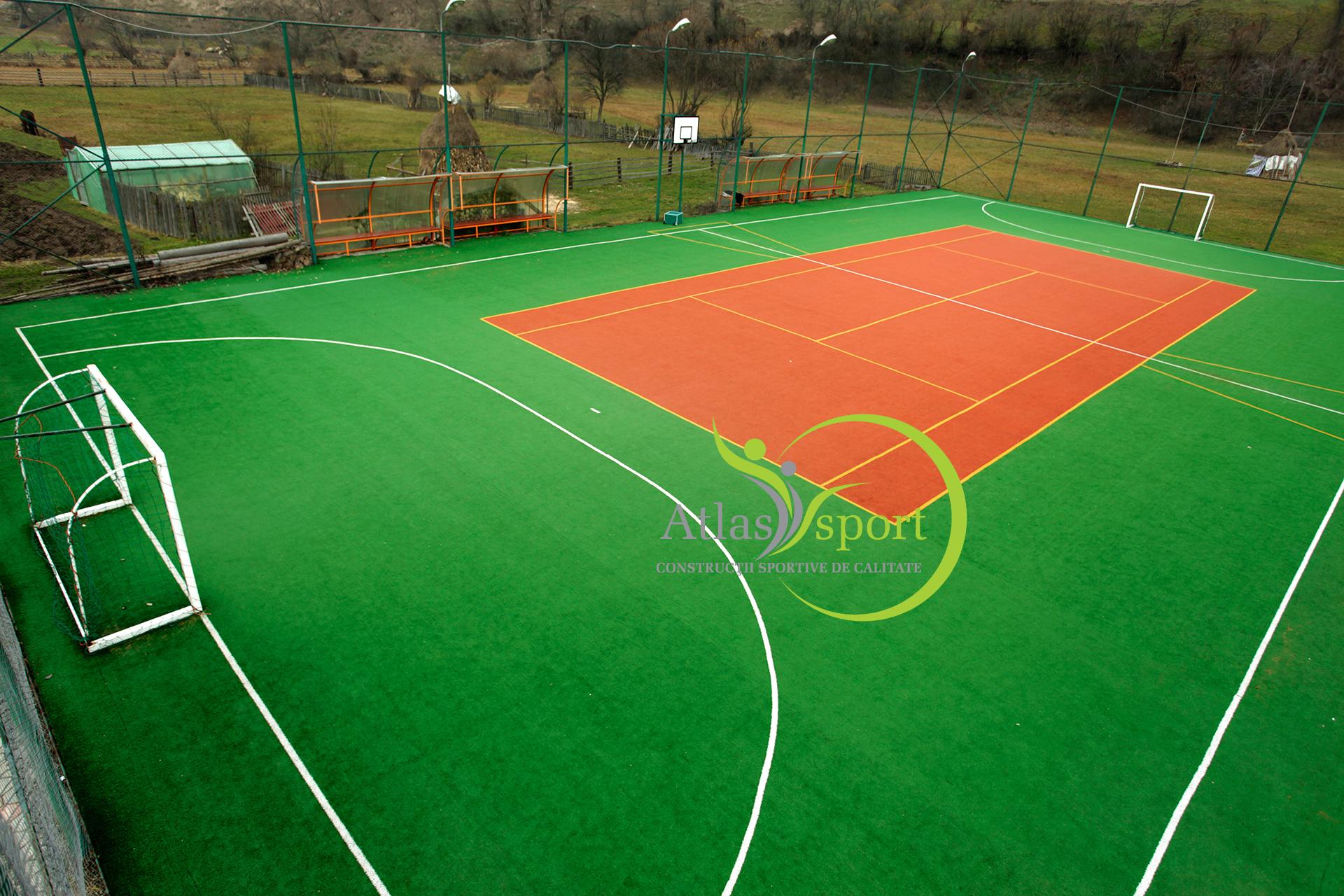 Terenul de sport are o suprafaţă de 1032 mp şi a fost realizat din gazon sintetic multisport montat pe dale de pavaj.