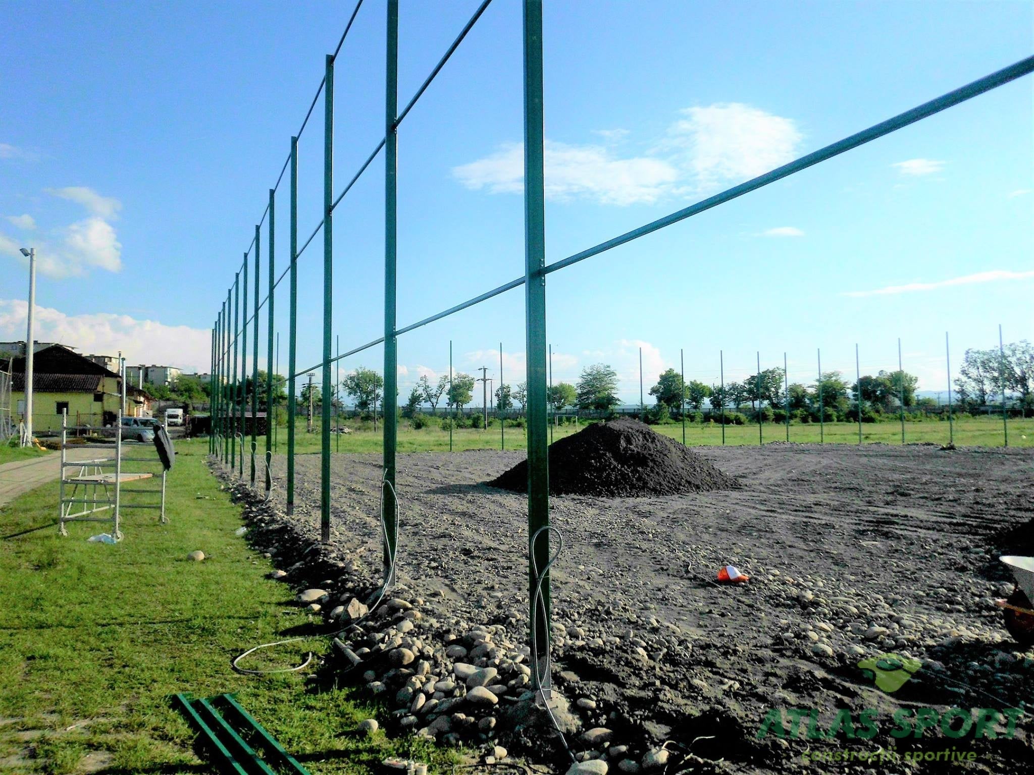 Gazonul a fost marcat cu linii de culoare alba si galbena, iar infill-ul, necesar desfasurarii propice a activitatii, a fost facut cu nisip cuartos uscat (10-15 kg/mp).