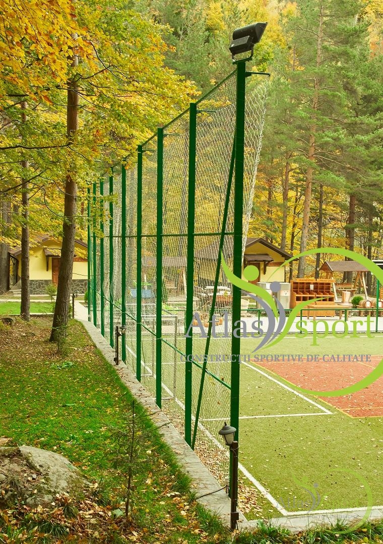 Împrejmuirea este realizată doar pe laturile scurte având o lungime totală de 40 ml. Împrejmuirea este fixată pe stâlpi metalici cu înălţime de 6 m pe care se montează plasa împletită de tip eco de culoare verde.