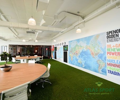 Gazonul decorativ poate fi folosit de asemenea, în interioare. O pată de gazon artificial decorativ va aduce la viaţă suprafeţe reci şi mari de piatră.