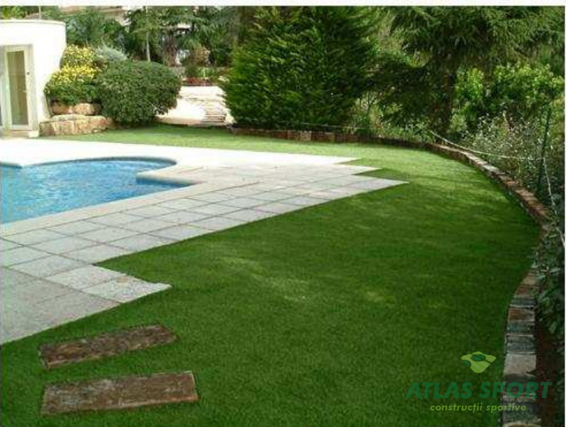 Terasele şi piscinele pot fi, de asemenea, decorate cu puţin gazon artificial.