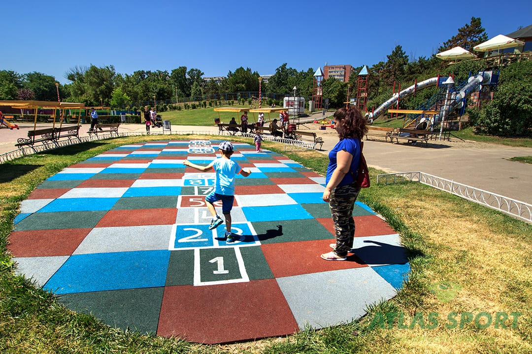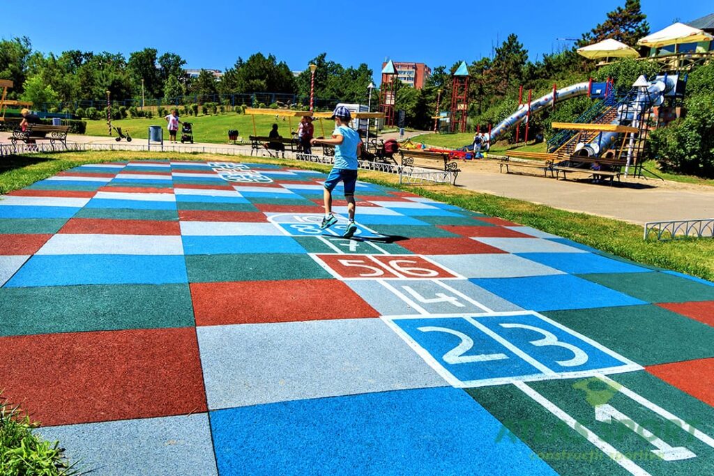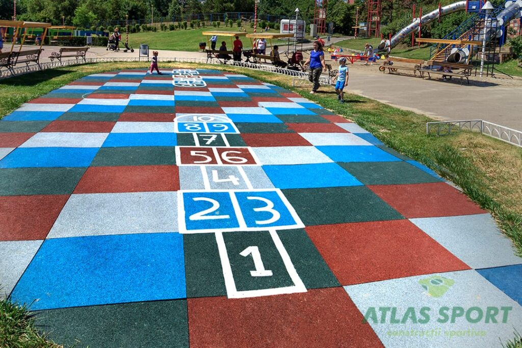 Lucrări de îmbrăcare cu dale de cauciuc parc “Țara Piticilor”.