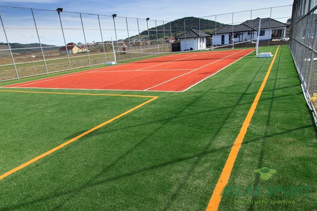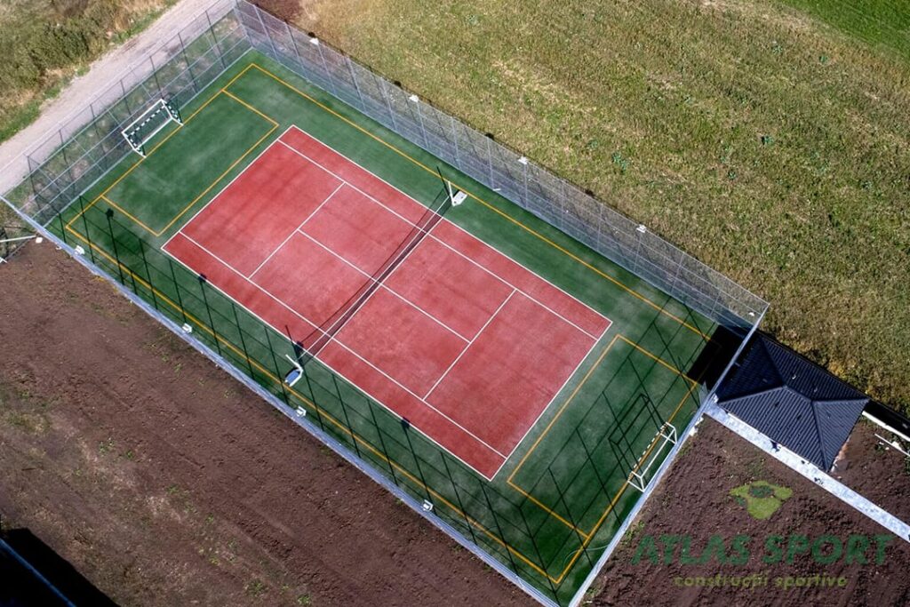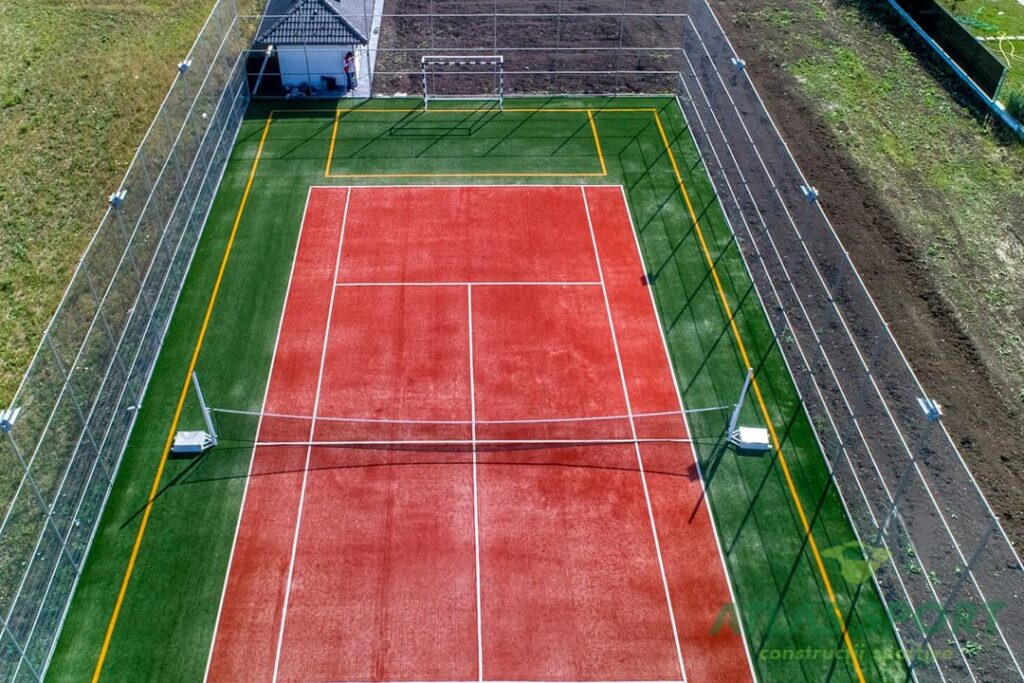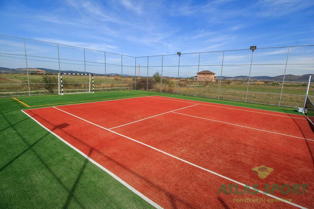 Realizare suprafață cu gazon sintetic pentru teren de multisport rezidențial în Sângeorgiu de Mureș din județul Mureș.